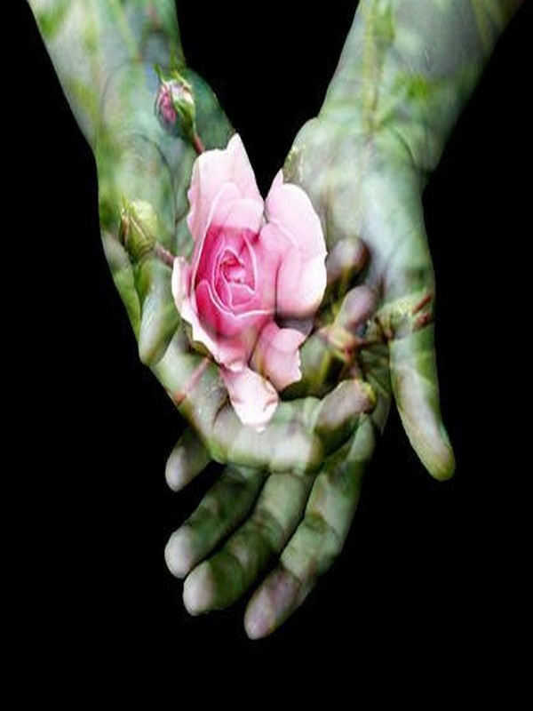 · UNE MAIN OFFRE UNE ROSE D'AMOUR ROUGE
